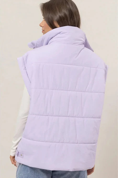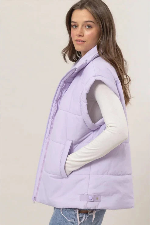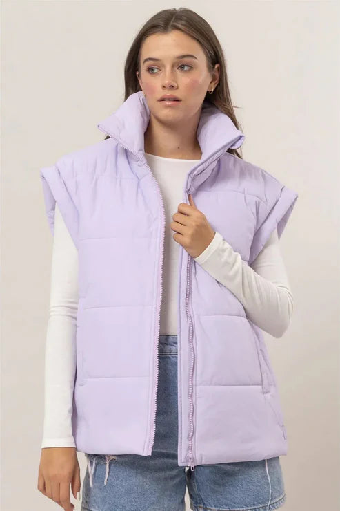 Add a splash of fun to your outfit with the Lavender Quilted Puffer Vest! This lightweight, padded vest features a high collar and a trendy pastel shade that’s as playful as it is stylish. Perfect for layering, it keeps you cozy while adding a cheerful pop of color to your look. Whether you’re out running errands or heading to a casual evening hangout, this vest makes staying warm feel effortlessly joyful.