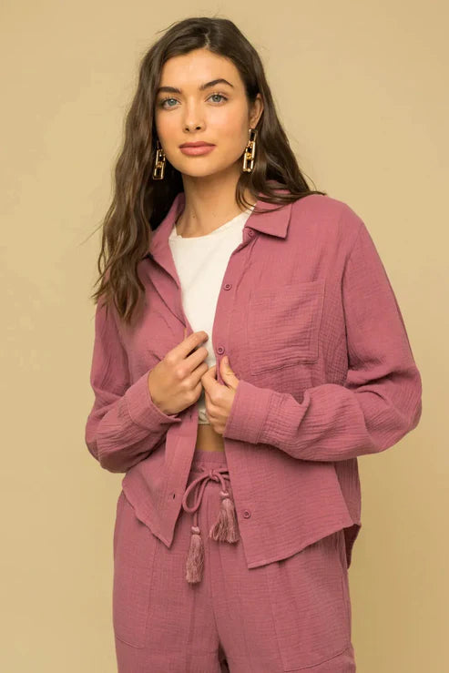 Expertly crafted from 100% cotton, the Myrtle Shirt offers a solid color and long sleeve design with front buttons. This boho style shirt is both versatile and stylish, making it a cute and sweet choice for any occasion.