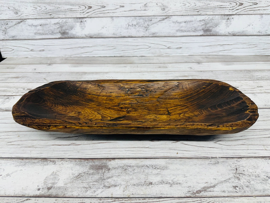 Santa Fe Style Dough Bowl – Handcrafted Elegance This Santa Fe style dough bowl is a true work of art, hand-carved, hand-painted, hand-polished, and hand-waxed to perfection using lead-free wax. It embodies rustic charm while maintaining exceptional quality in every piece. Please note that due to the handcrafted nature, each bowl is unique and may vary slightly from one another. Born in Mexico and raised in Texas, this dough bowl represents the perfect blend of traditional craftsmanship in Mexico and meticulous finishing work done in the USA. Dimensions: L20” x W8” x H3” Weight: 2 lbs